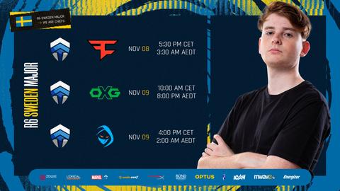 Our first match will be live at 8:30PM (AEST) November 8 against Oxygen Esports. Followed shortly after by FaZe Clan at 2:30AM AEST. You can view the full schedule on the official website.