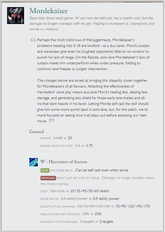 In his current iteration, an absurd champion that, regardless of how poorly he does in lane (despite having all the tools necessary to destroy the lane) he’s still incredibly potent throughout the entire game. Nerfs to his early game were necessary in order to counterbalance his disgusting potential to snowball mid-game.