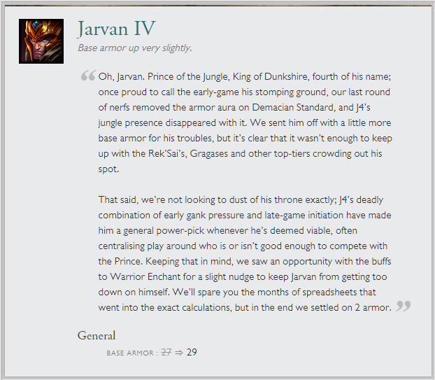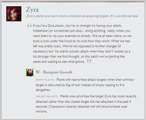 Just fine-tuning the jungle. Nothing too substantial. Zeke’s nerf also necessary – that item was way too cost-efficient for the raw power it delivered.